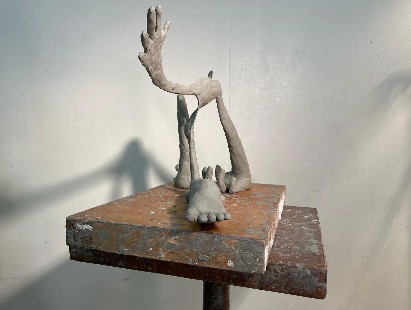 Feel The Weight (study) 12x20x10 in, clay, wire, 2022